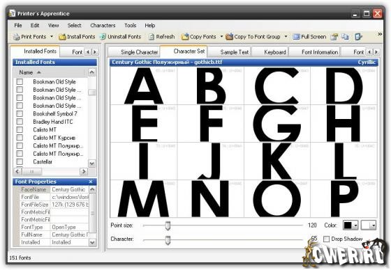 Printer's Apprentice представляет из себя потрясающий менеджер шрифтов для операционных систем Windows. Если вы являетесь художником, профессиональным публицистом или просто программным энтузиастом, и если у вас на компьютере имеется большое количество разнообразных шрифтов, то данная программа поможет вам в организации вашей коллекции. Программа поддерживает работу с шрифтами форматов TrueType, Adobe Type, и OpenType. С помощью этой утилиты вы сможете просматривать, сравнивать и выводить на печать ваши шрифты, установленные в системе. Также программа позволяет просматривать шрифты в указанных директориях, которые еще не установлены в систему, но хранятся на жестком диске - для этого в программу встроен браузер для просмотра шрифтов из указанного хранилища. Вы можете устанавливать и удалять шрифты намного быстрее, проще и удобнее с данной программой, чем это делаете через панель управления.