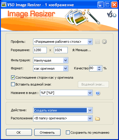 VSO Image Resizer 2.0.0.19 - новая версия программы для изменения размеров графических картинок различных форматов - Jpeg, gif, bmp, tiff и др., а также форматов цифровых камер (Canon .CR2, Nikon .NEF , .MRW Minolta)...