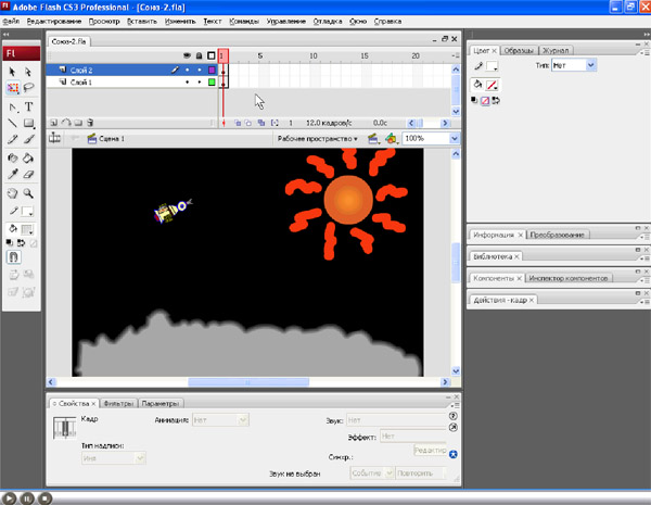 - Редактирование нескольких кадров анимации. Перемещение анимации