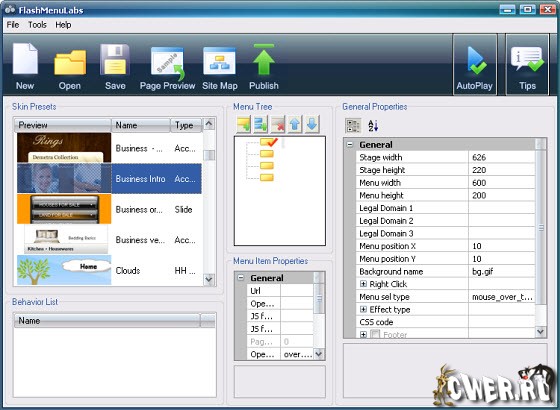 Flash Menu Labs - это мощный инструмент для быстрого создания Flash (Флеш) меню для Вашего вебсайта. Даже новички без знания ActionScript могут успешно создавать меню за считанные минуты! Вы хотите современное Flash (Флеш) меню с впечатляющими эффектами, анимацией притягивающей взгляд и нетривиальной структурой, но не хотите тратить месяцы на кодирование, отладку и настройку внешнего вида? С Flash Menu Labs Вы получите все эти и многие другие возможности всего за несколько минут!