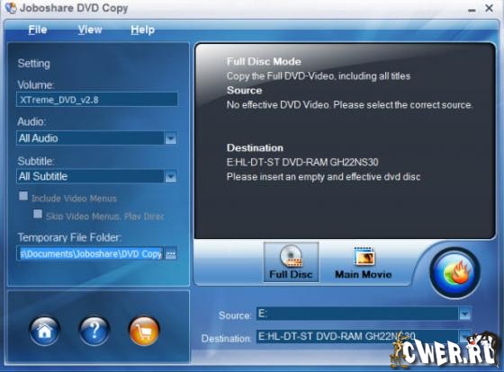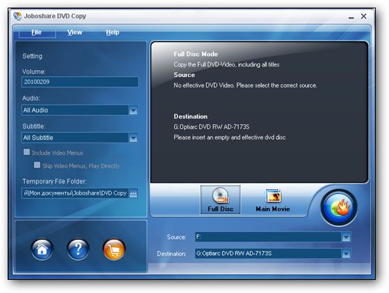Joboshare DVD Copy - программа для быстрого клонирования и создания резервных копий ваших DVD. Поддерживает точное копирование DVD 1:1, а также копирование DVD с любым региональным кодом. Может копировать DVD в ISO-файл или папку DVD на жестком диске и наоборот, записывать их на DVD. Способна сжимать DVD-9 (двухслойный DVD) до размеров обычного DVD-5 диска. Позволяет удалить ненужные DVD меню, любые субтитры, звуковые дорожки и копировать только фильм.