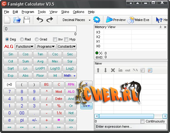 Farsight Calculator - удобный в работе программируемый калькулятор, позволяющий сохранять процесс вычисления как программу или функцию и выполнять арифметические операции любым алгебраическим методом. Программа поддерживает больше ста функций, включая алгебраические, тригонометрические, гиперболические, статистические, и финансовые функции. Кроме того Farsight Calculator содержит ряд мощных специализированных инструментов. Прост в использовании, имеет удобный интерфейс, работает на всех платформах операционных систем Windows.