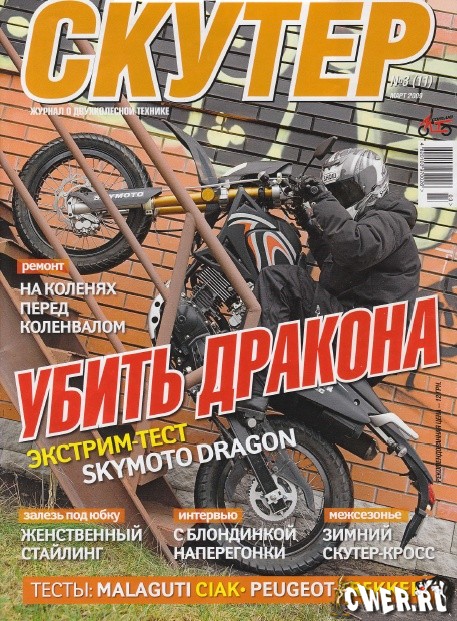 Скутер - первый всеукраинский журнал о двухколесном транспорте. Журнал пишет о мотодвижении в Украине, о личностях в этом движении, тестирует мото, гидро- и квадротехнику (как новую, так и б/у), реально продающуюся в Украине, даёт новостные и обзорные материалы, а также технические. Идет сбор базы мотообъединений в Украине, публикуется расписание ближайших слётов и других мотомероприятий.